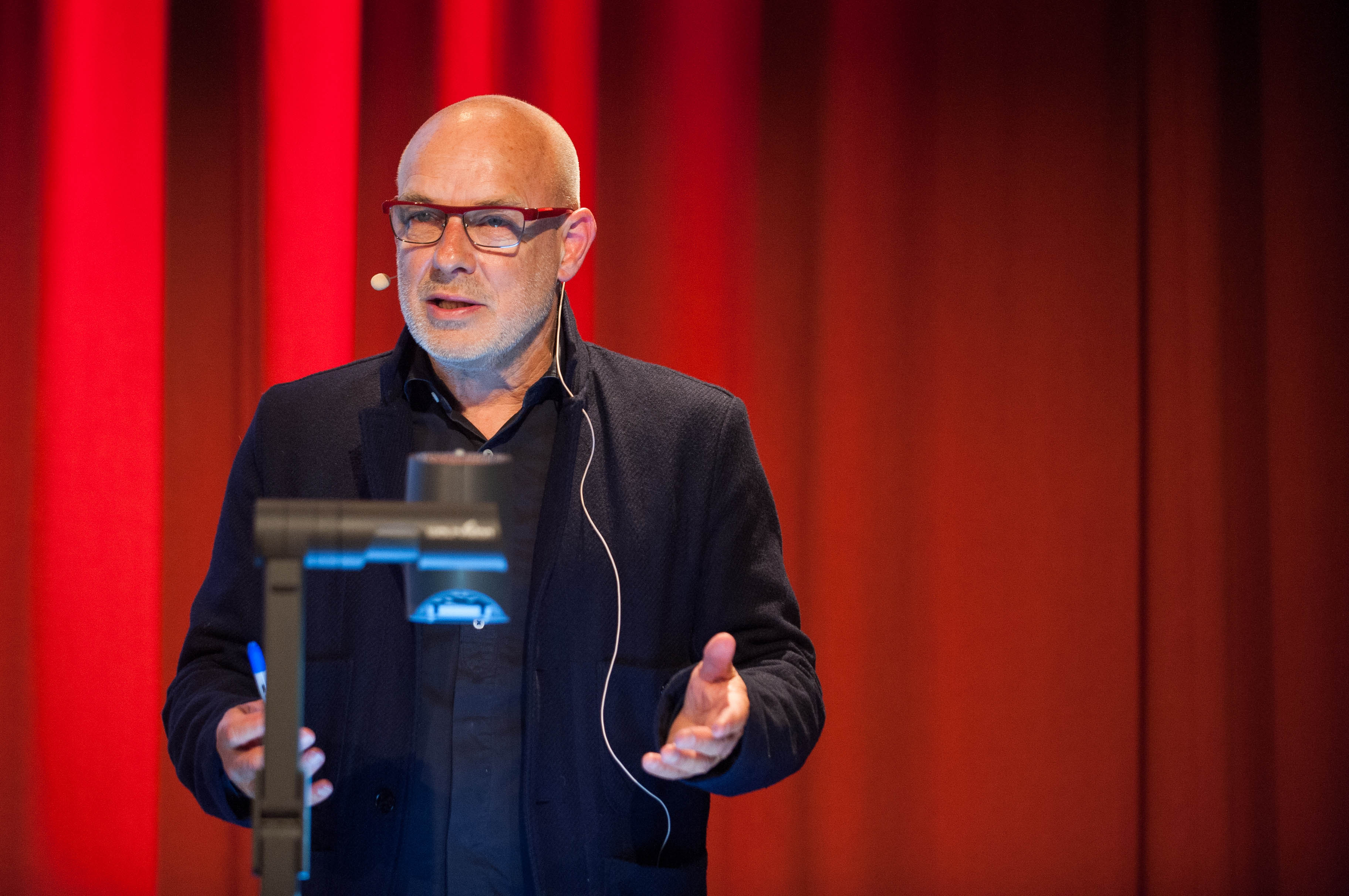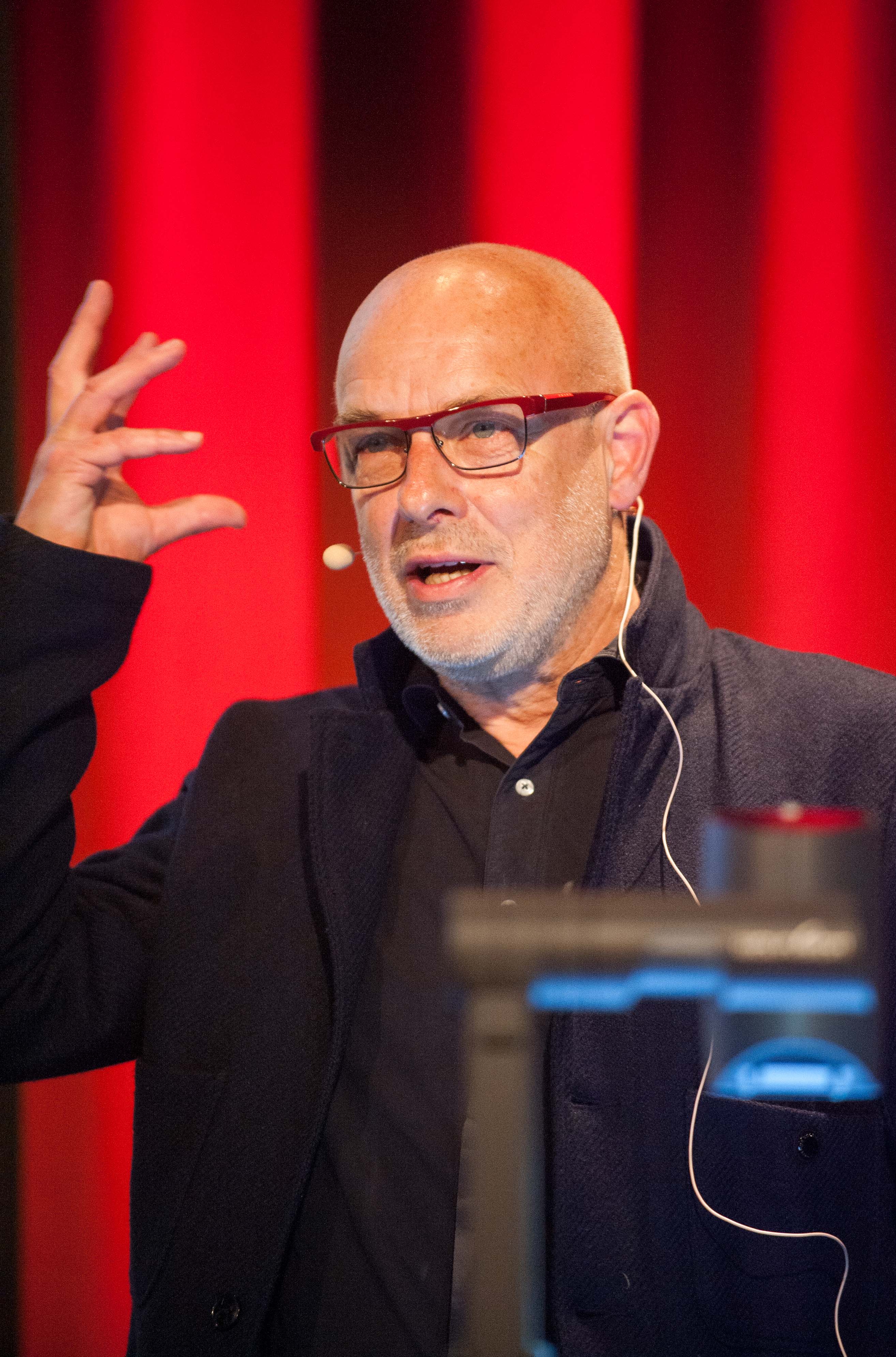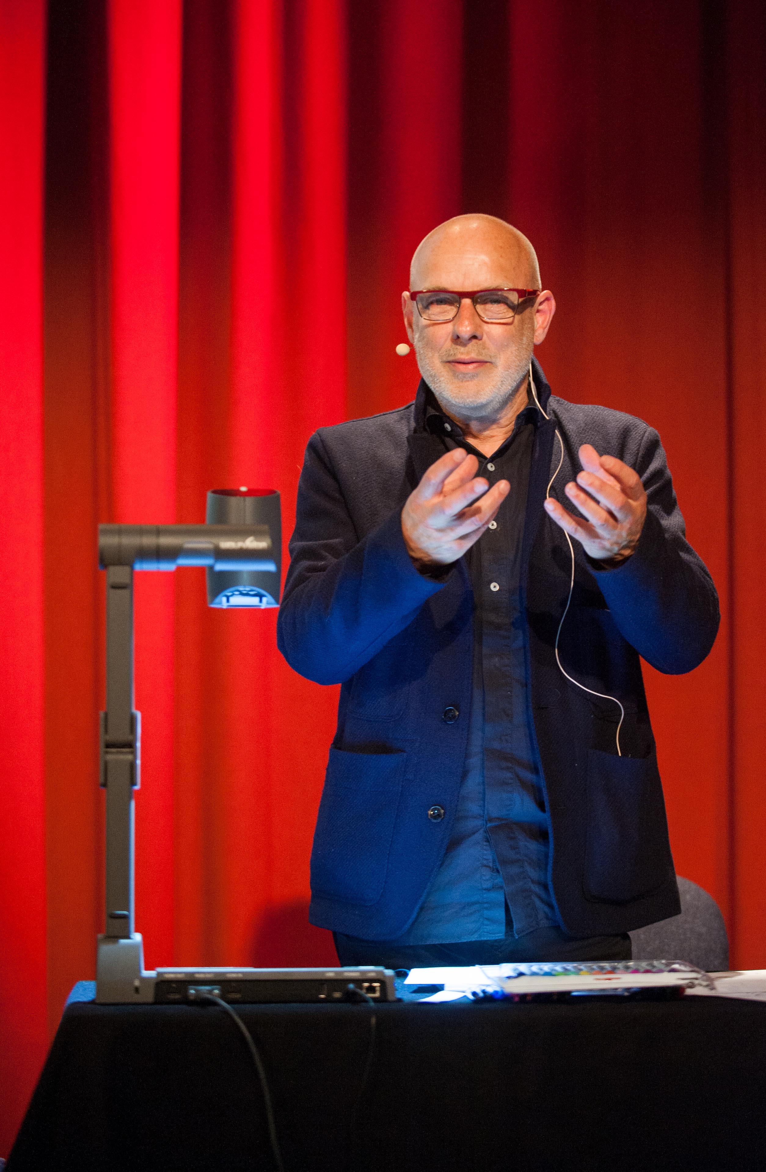 The third lecture in the series was given by influential musician and producer, Brian Eno, on Tuesday 10th May 2016 in the George Square Lecture Theatre.